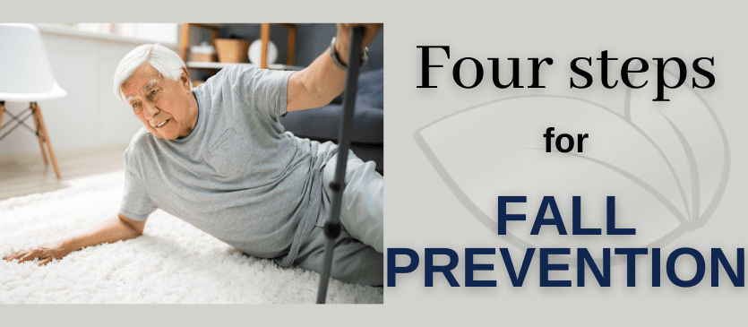 Every second of every day, an older adult falls. According to the CDC, one out of five falls cause injuries that lead to loss of independence, and over 800,000 patients are hospitalized each year because of a fall injury, most often because of a head injury or hip injury. Contrary to belief, falls are not a normal part of aging. Most falls can be prevented and you have the power to reduce your risk. There are four steps that you can take to keep yourself for loved one safe and stay independent longer.