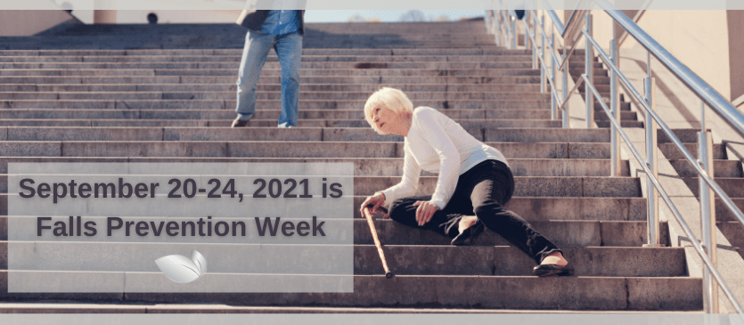 September 20-24, 2021 is Falls Prevention Week, a nationwide effort to raise awareness that falls are preventable. 1 in 4 people aged 65 and older fall each year. According to the national council on aging, falls result in more than 3 million injuries treated in emergency rooms and over 800,000 hospitalizations. Because of these statistics, older adults fear falling and therefore limit their activities and social engagements resulting in further physical decline and feelings of helplessness. The Centers for Disease Control and Prevention recommend four things you can do to prevent falls.