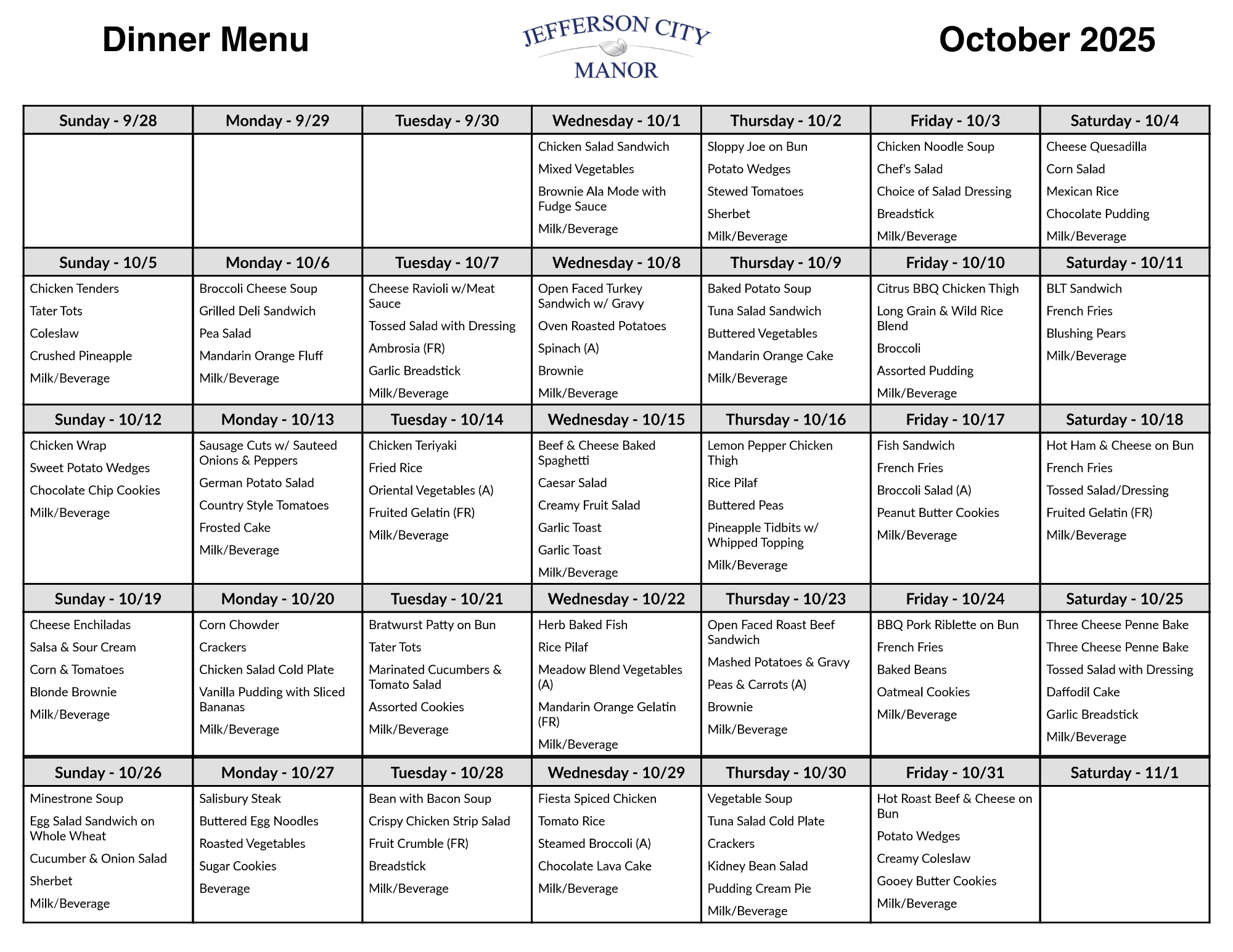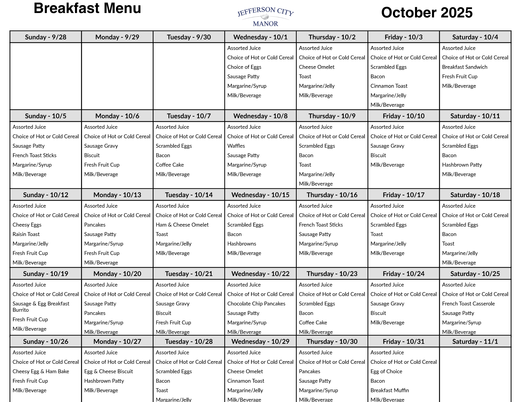 We offer an exceptional dining experience with restaurant-style service and menus, including specials served daily. The culinary team creates a variety of delicious, nutritious meals using fresh ingredients, catering to diverse tastes and dietary needs. Residents can enjoy meals in a warm and welcoming dining room that fosters a sense of community and social connection. The attentive staff ensures a pleasant dining experience, accommodating individual preferences and providing a personalized touch. With a flexible ala carte menu that changes regularly, Jefferson City Manor provides residents with a delightful and enjoyable dining experience every day. Registered Dietitians work with our professional dietary and nursing team to achieve the highest possible nutritional status of our residents. Also, Registered Dietitians provide nutritional education for our employees, resident and families.